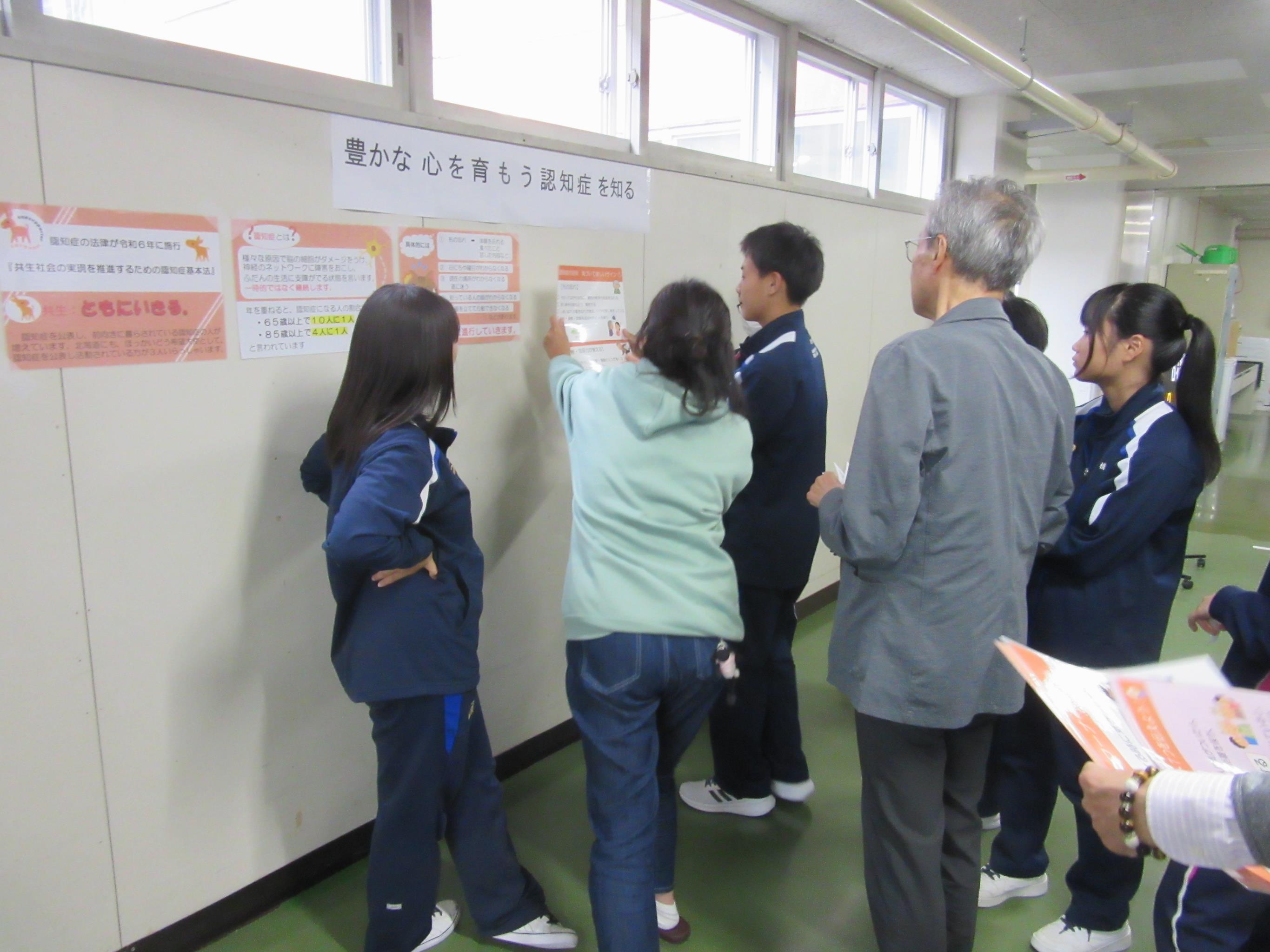 前半は東陽中学校、後半は東明中学校で認知症に関するパネル展を開催しました。
