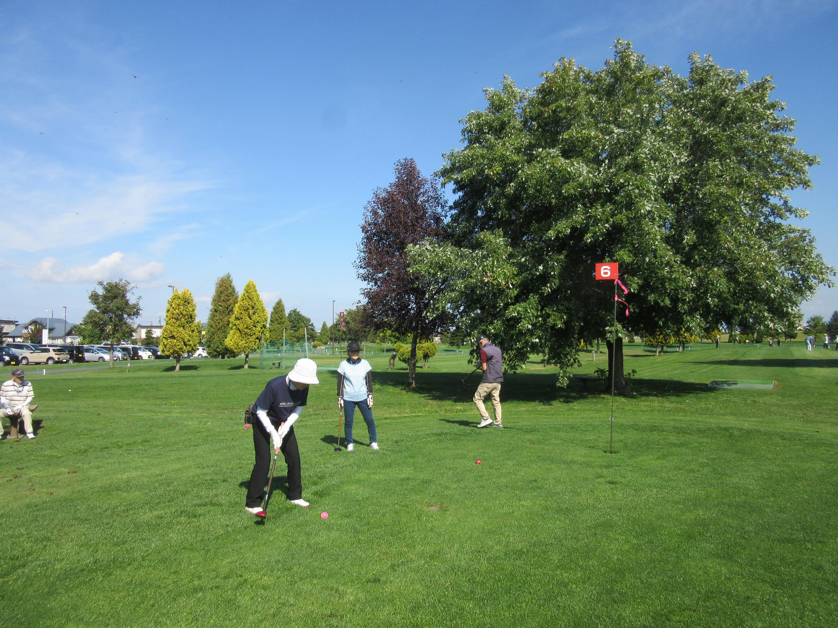 参加者は、暑いくらいの陽気の中、パークゴルフを楽しみながら親睦を深めました。