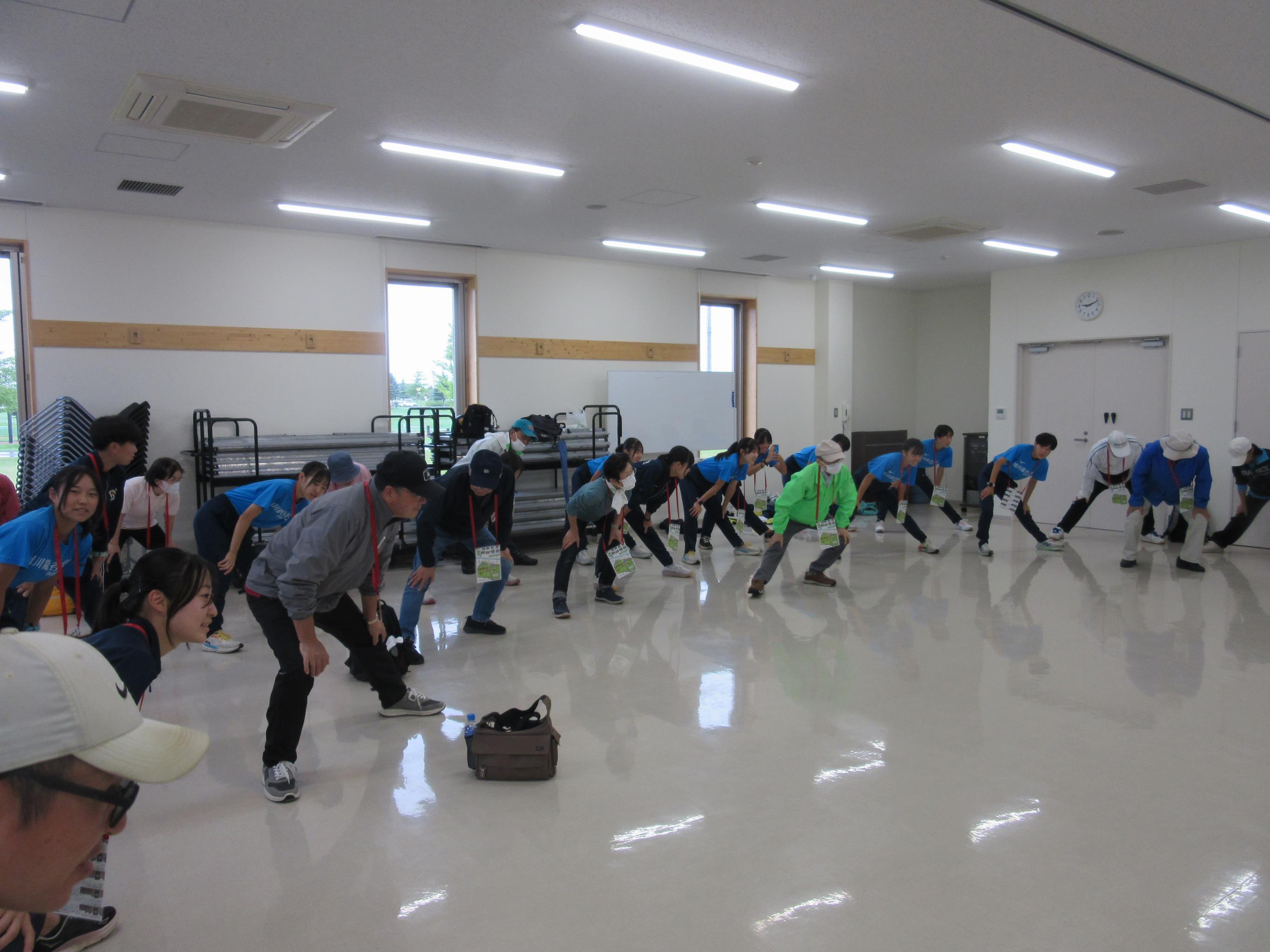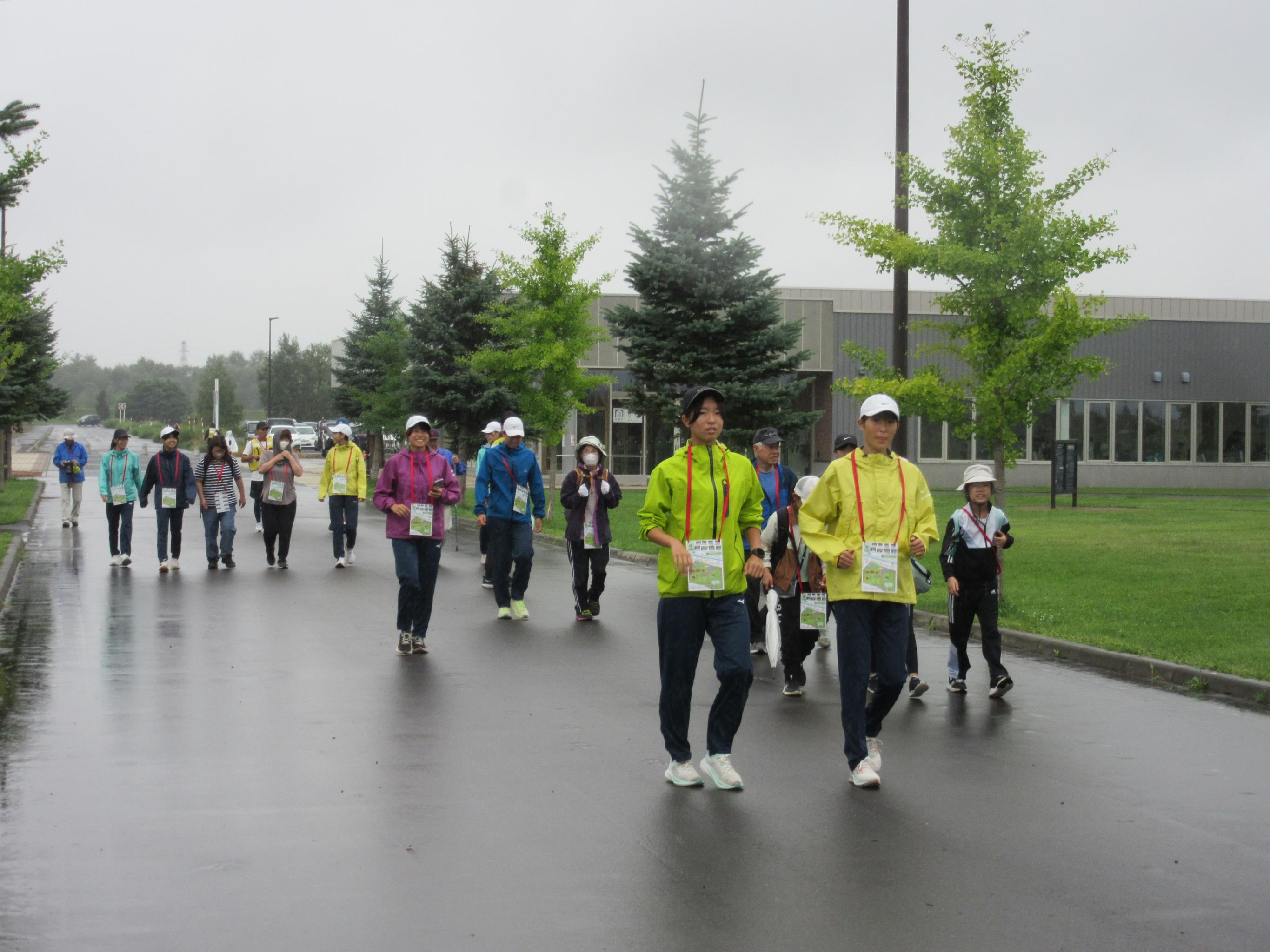 準備運動や、歩き方のレクチャーなどもあり、楽しい雰囲気の中総勢58名全員で3キロのコースを完歩しました。