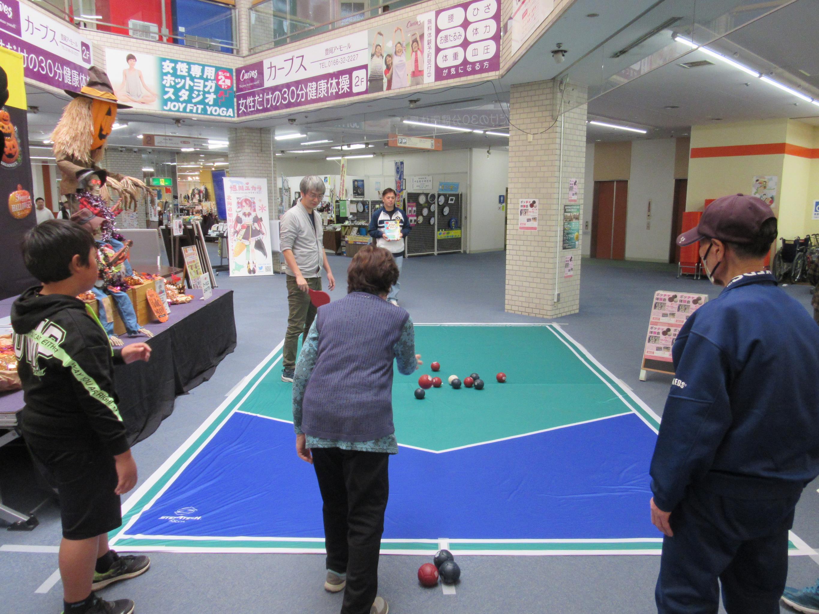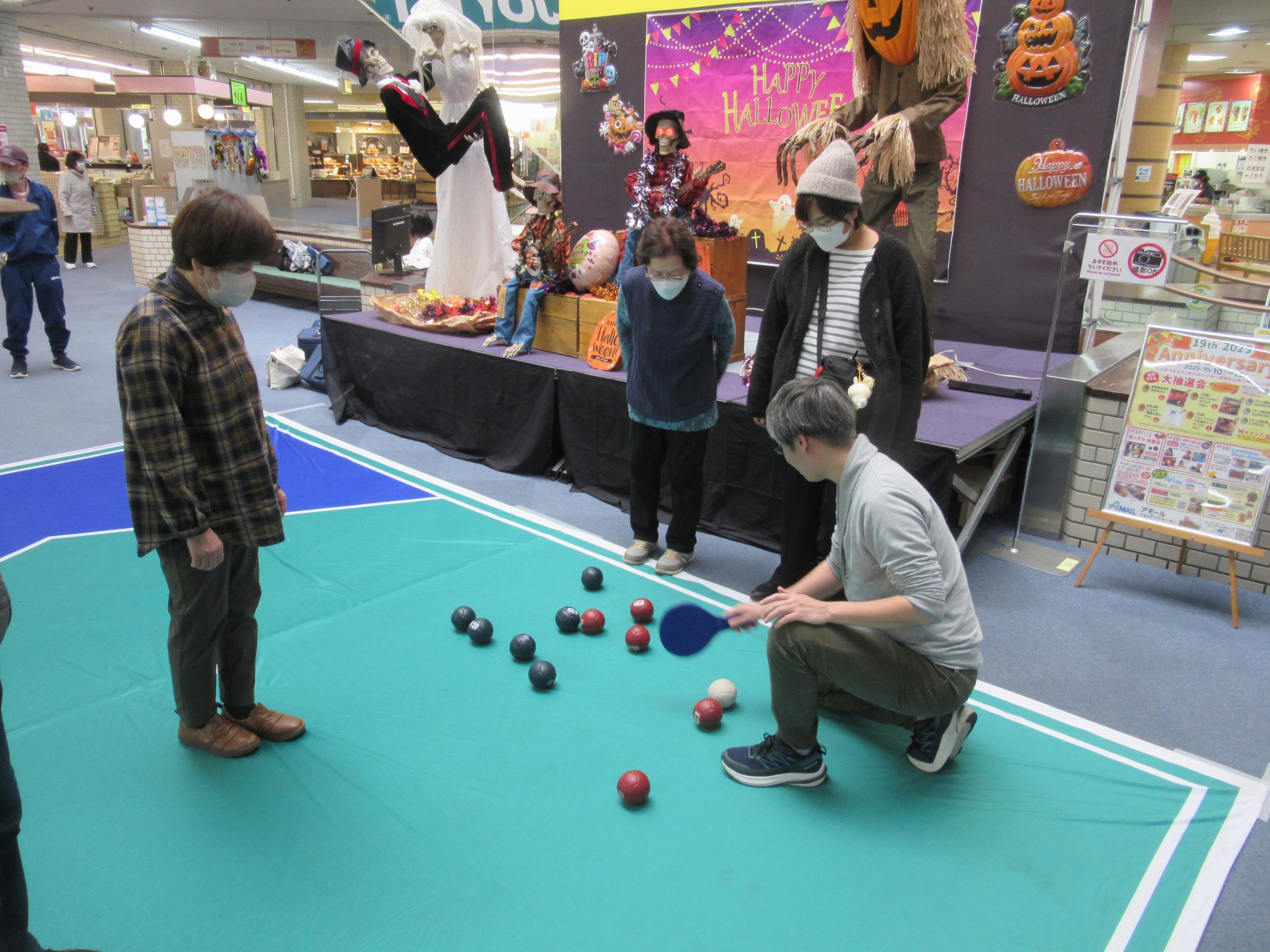 パラリンピックで話題になったスポーツ「ボッチャ」体験会を、アモールショッピングセンターで開催しました。