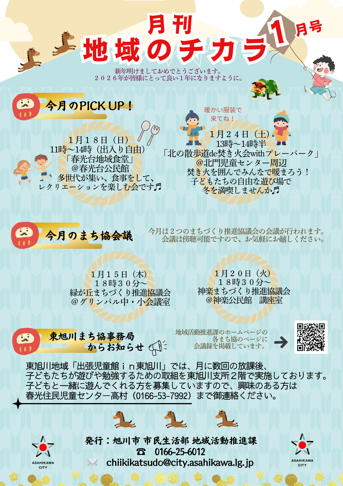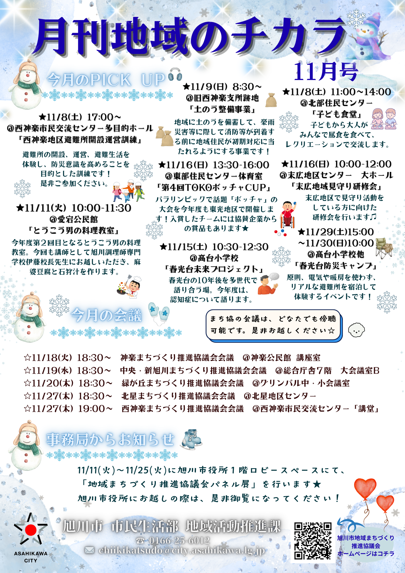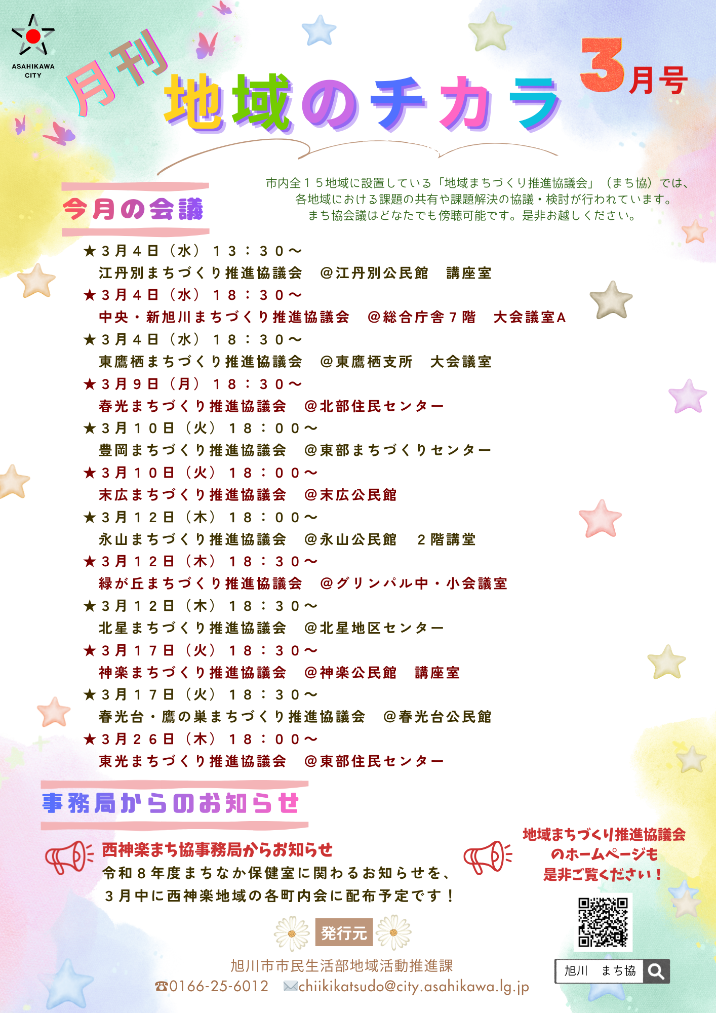 各地域で開催する事業やイベント等のお知らせ、地域まちづくり推進協議会の会議の日程、各事務局からの連絡事項をお伝えするために、毎月発行しています。