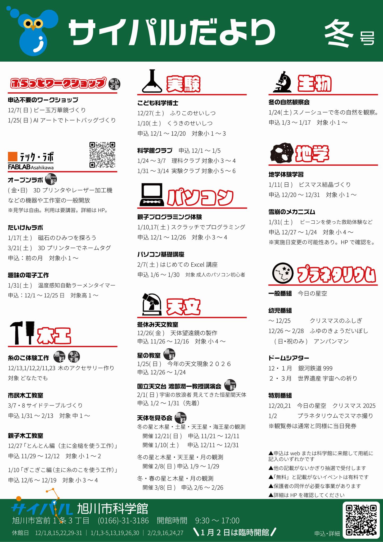 サイパル☆みらい基金は旭川市科学館の新しい展示や特別展等の開催に役立てられる基金です。