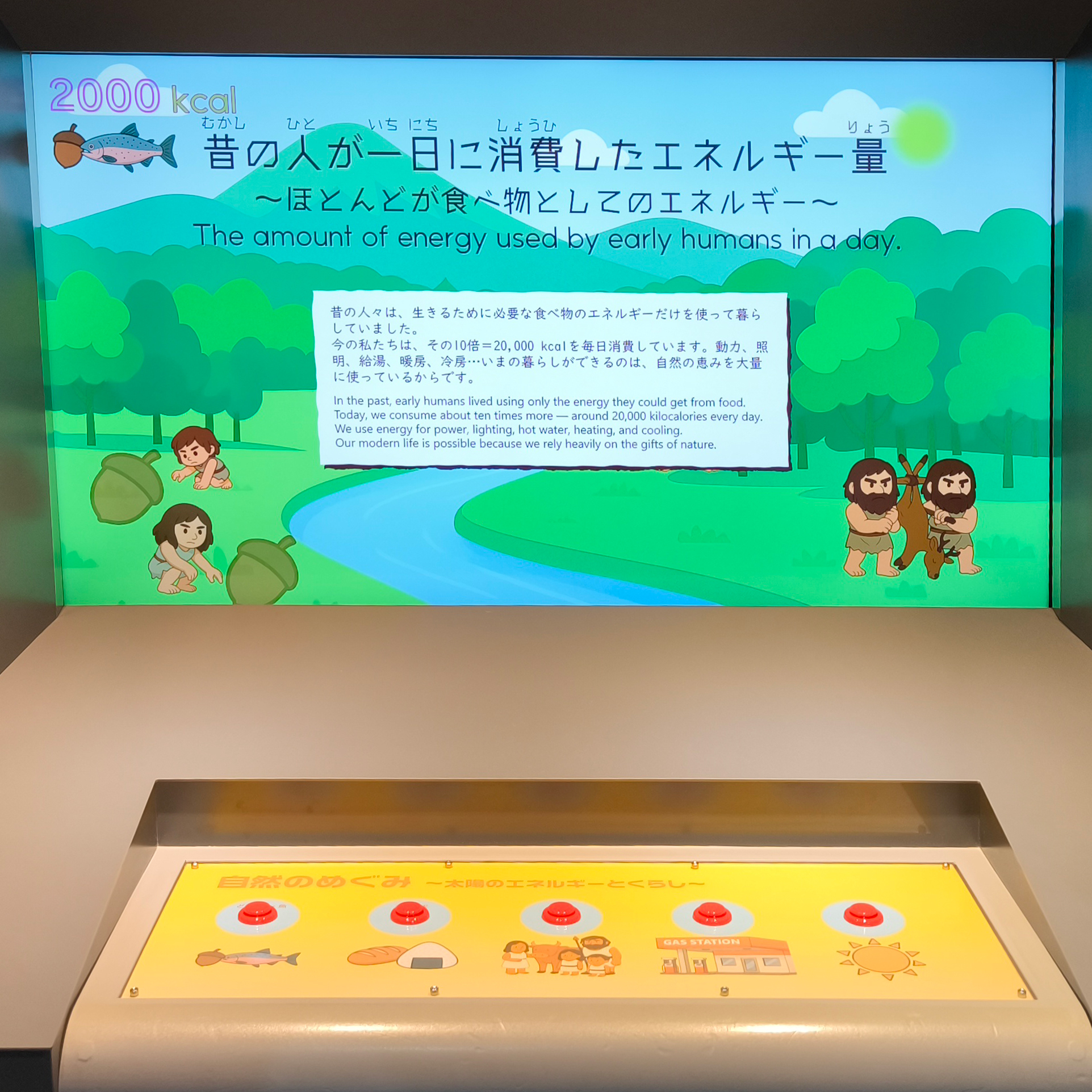 人類は太陽のエネルギーを上手に使って暮らしてきました。これからもこの暮らしを持続できるのかそんなことを考える展示です。