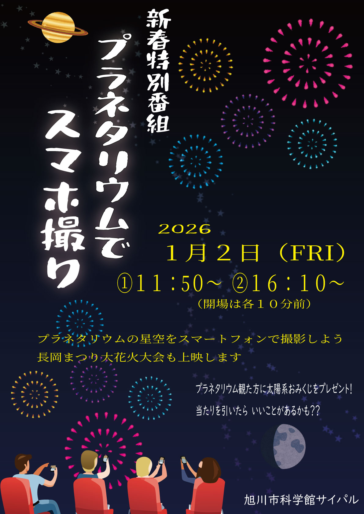 その他:この日にプラネタリウムをご覧いただいた方には、太陽系おみくじ(数量限定)をプレゼントします。
