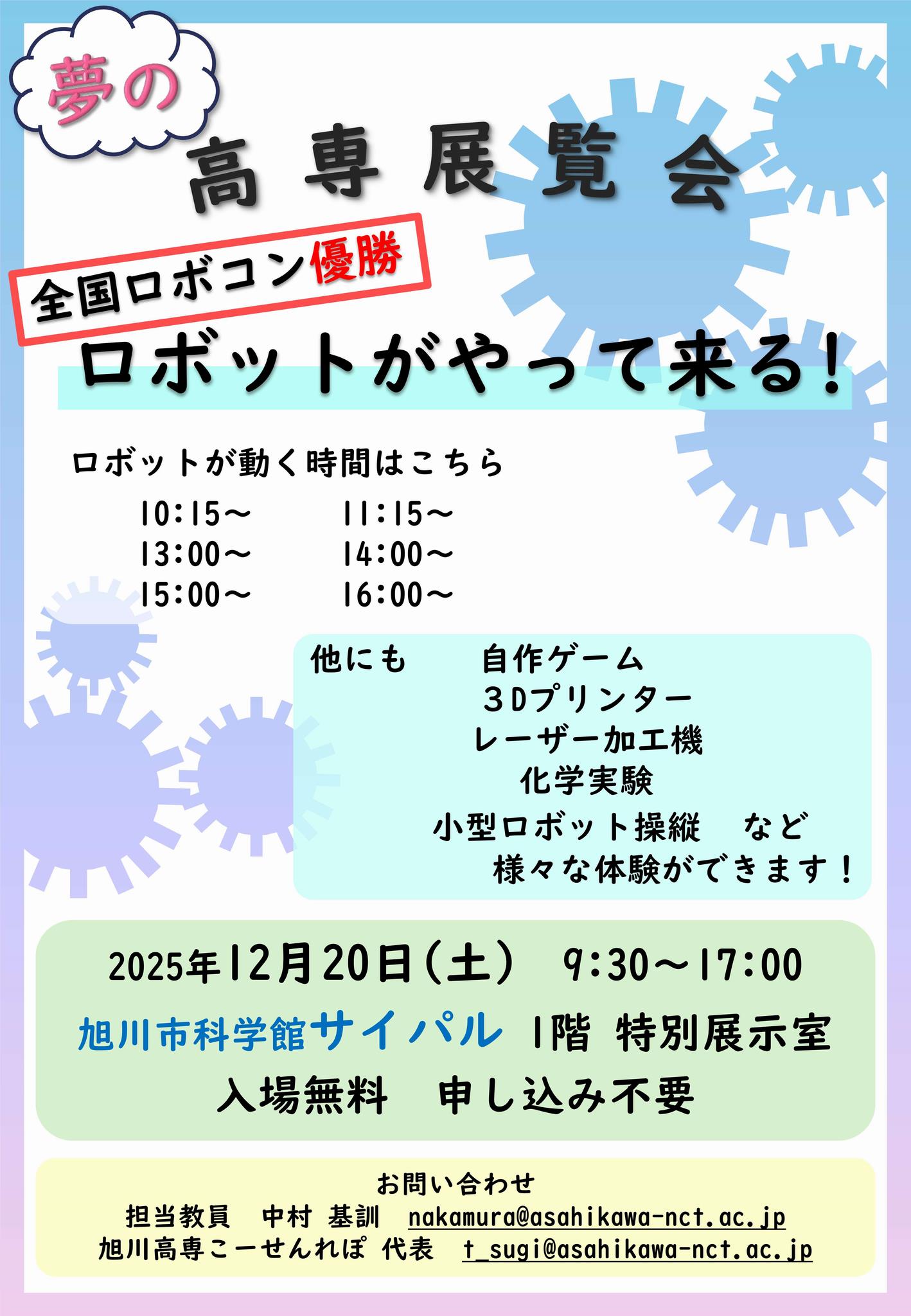 高専ロボコン2025全国大会で優勝したロボット(右上写真)も展示されます!